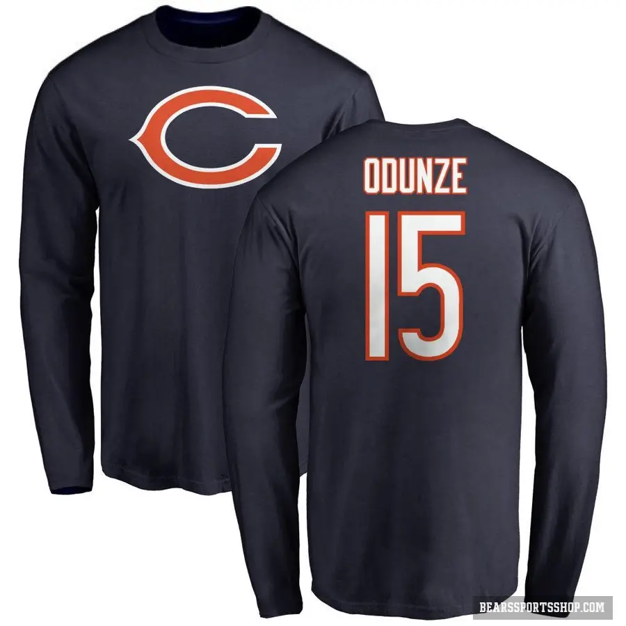 The Youth #15 Rome Odunze Chicago Bears Navy Logo Long Sleeve T-Shirt is a must-have for devoted Chicago Bears fans. The cotton material ensures comfort and durability. Whether cheering from the stands or showing support, this t-shirt represents the Bears.